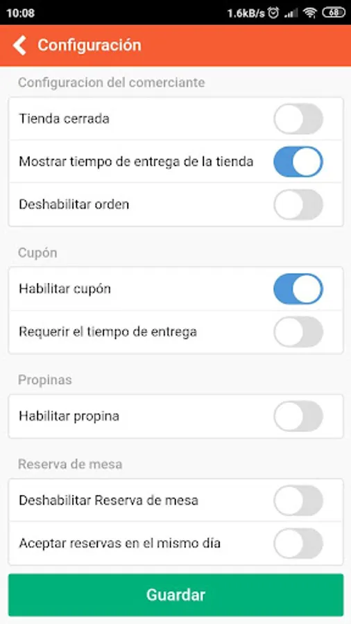 Among the options you will be able to change the status of the order, see the reservations, change the status of the items, open or close the store, show the estimated delivery time, enable tips, enable discount coupons and much more.