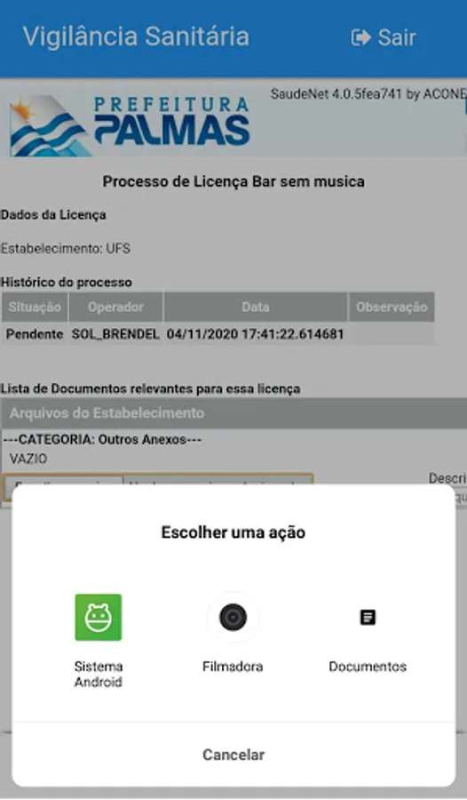 Application developed to consult, fill in information and monitor all health surveillance processes