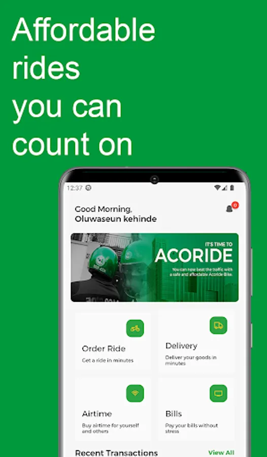 Aco-Ride is a free on-demand motorcycle-hailing app that provides secure, trusted, and safe transportation for everyone.