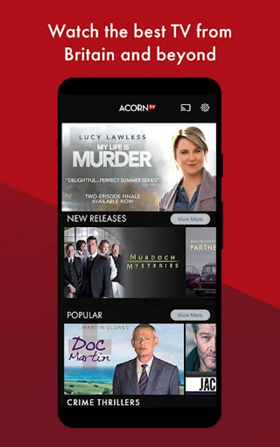 Hailed as “Netflix for the Anglophile” by NPR, Acorn TV offers hard-to-find gems, timeless classics, and newly-discovered favorites from Britain, Ireland, Australia, and beyond. Start a 7-day free trial to watch such fan favorites as Doc Martin, A Place to Call Home, Murdoch Mysteries, Brokenwood Mysteries, Midsomer Murders, and Line of Duty, as well as Acorn TV Originals you can’t stream anywhere else, including Agatha Raisin, Loch Ness, Manhunt, and Mystery Road.