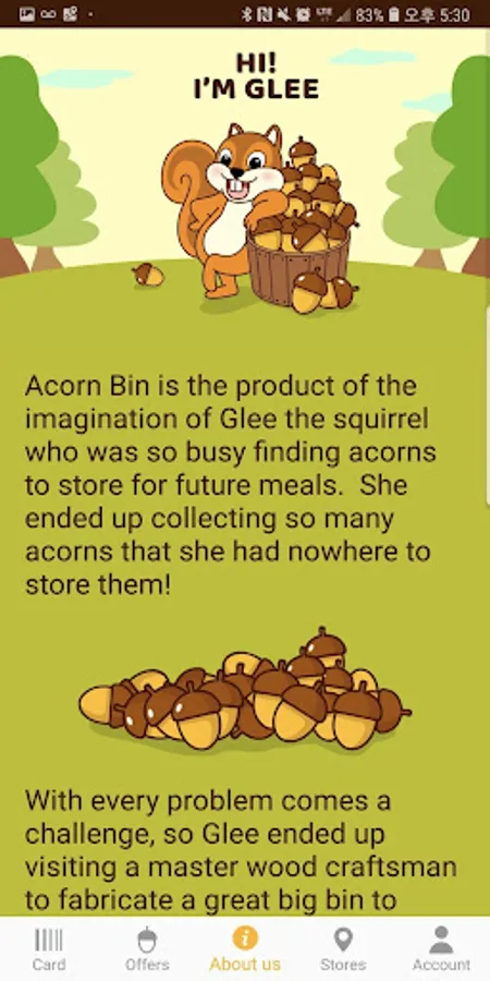 Be a busy squirrel like Glee, collect your point acorns today and store them in your Acorn Bin!
