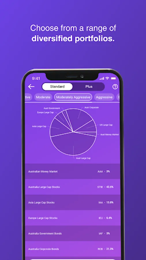Raiz gives you the option of choosing one of 8 pre-defined investment portfolios or a Plus portfolio that includes the option to invest in ASX listed stocks. Depending on the portfolio you choose, Raiz will diversify your investment across hundreds of the most widely held Australian and international companies, corporate bonds, government bonds, cash, bitcoin and/or residential property.
