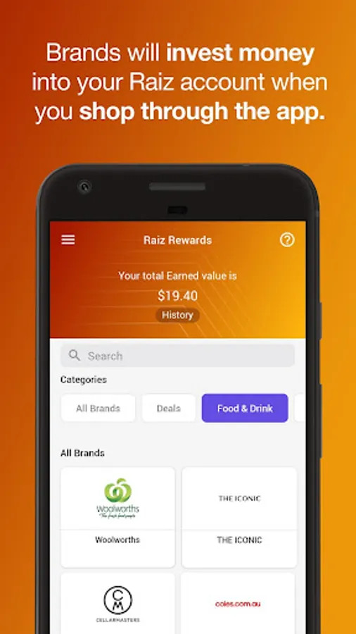 Do your usual shopping through hundreds of brands like eBay, Apple and Catch who are partnered with Raiz Rewards and get money invested back into your Raiz account.