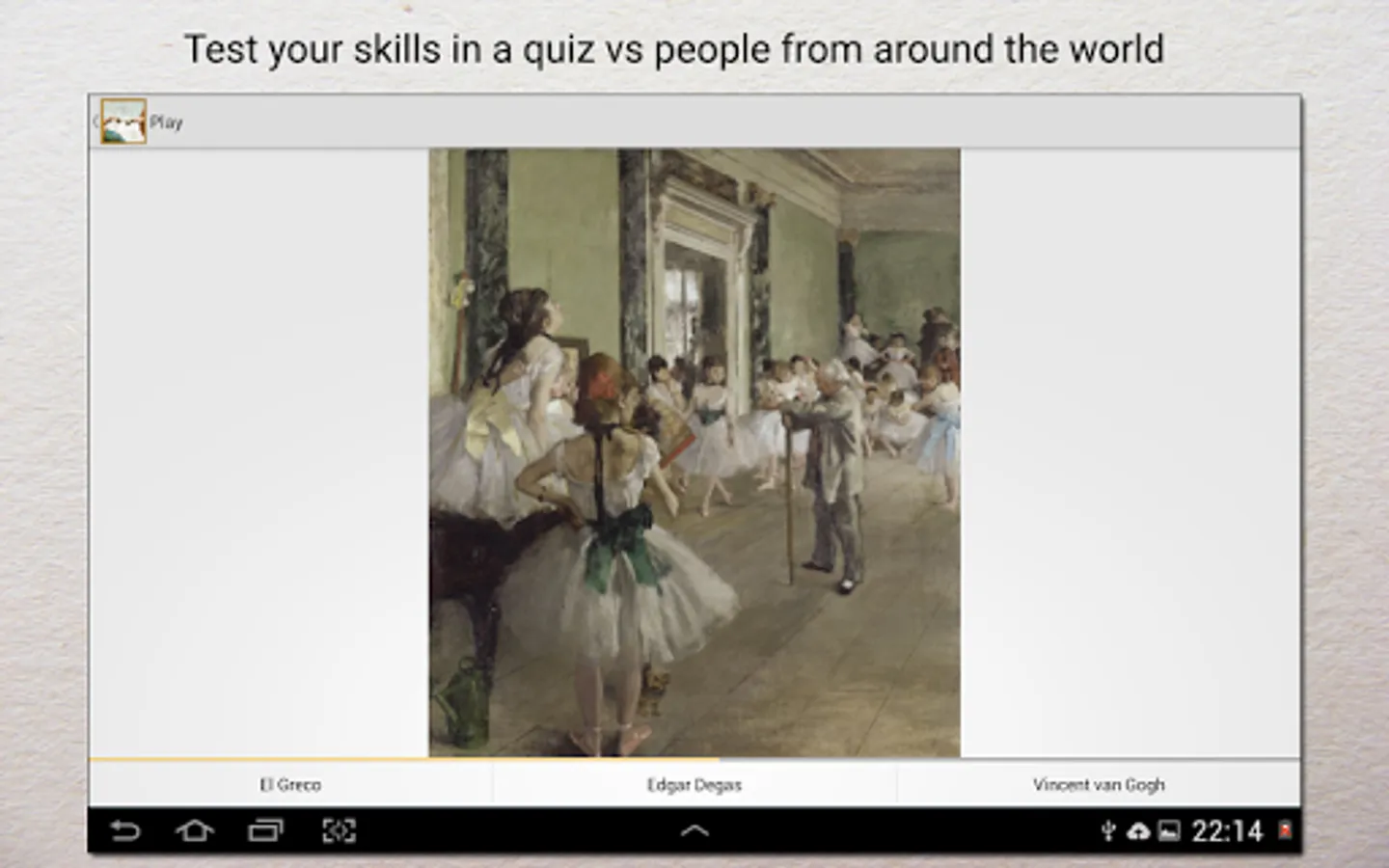 Learn about art, compete in a quiz and enjoy high quality wallpapers, all offline, without any micro-transactions :)