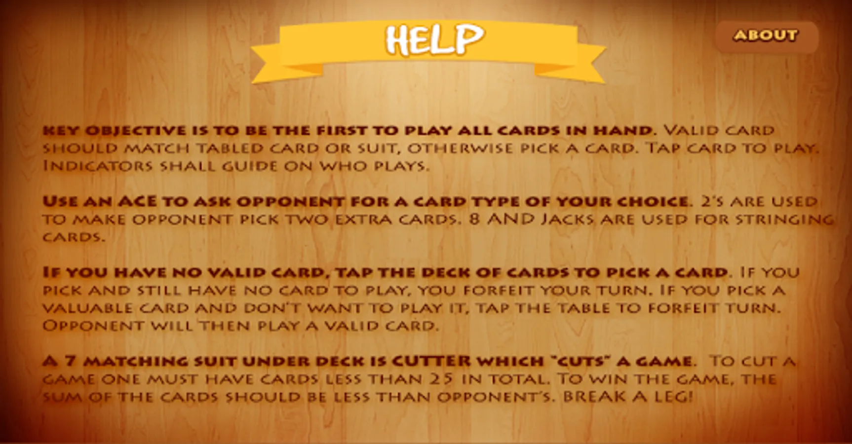 Matatu is a two player game played widely in Uganda. First one to play all cards wins, as you take turns in this exciting card game