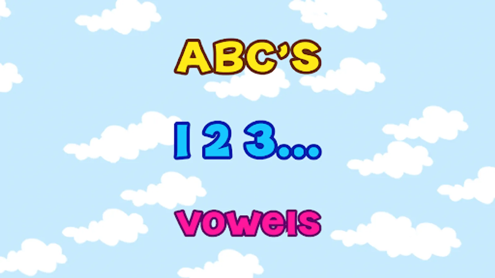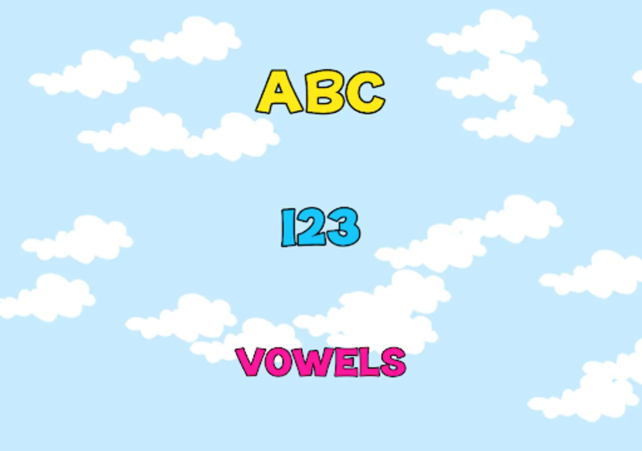 - 3 modes: Alphabet (A-Z), Vowels (A-E-I-O-U-Y), and Numbers (1-10)