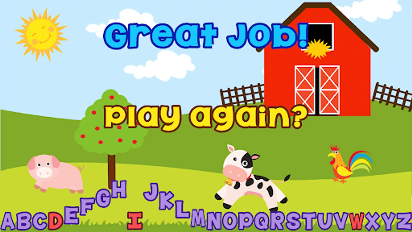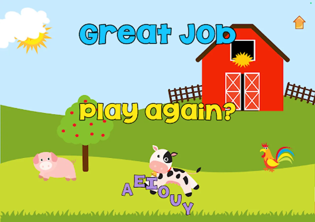 This app allows children to self teach on pronouncing the letters of the alphabet and numbers. They simply click on the barn to begin the next letter. After the letter is announced, repeat it back with your voice. You get three attempts per letter. At the end of the game, see the letters or numbers that were said wrong highlighted in red.