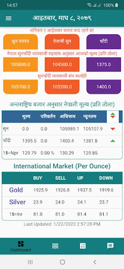 An app that displays the live gold and silver market rate in Nepali currency according to International market. We also show the gold and silver market value as updated by Federation of Nepal Gold & Silver Dealers' Association.