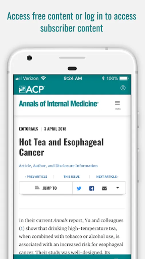 The Annals of Internal Medicine app gives you easy access to the latest articles and multimedia content from Annals of Internal Medicine. The app is free to download. ALL USERS can view free articles and subscribers can log in to view subscriber only content.