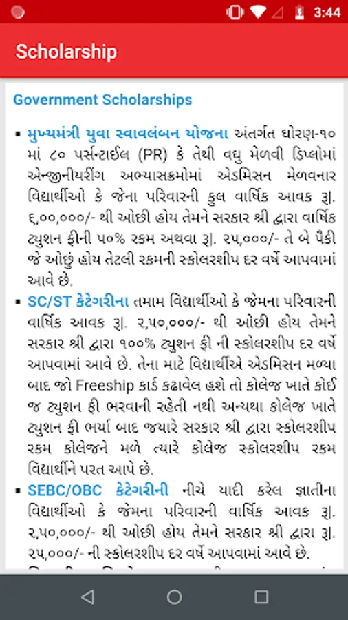 » Scholarship - Information of various government scholarships like Mukhyamantri Yuva Swavalamban Yojana (MYSY, www.mysy.guj.nic.in), scholarship for SC/ST/NT/DNT/SEBC/OBC students.