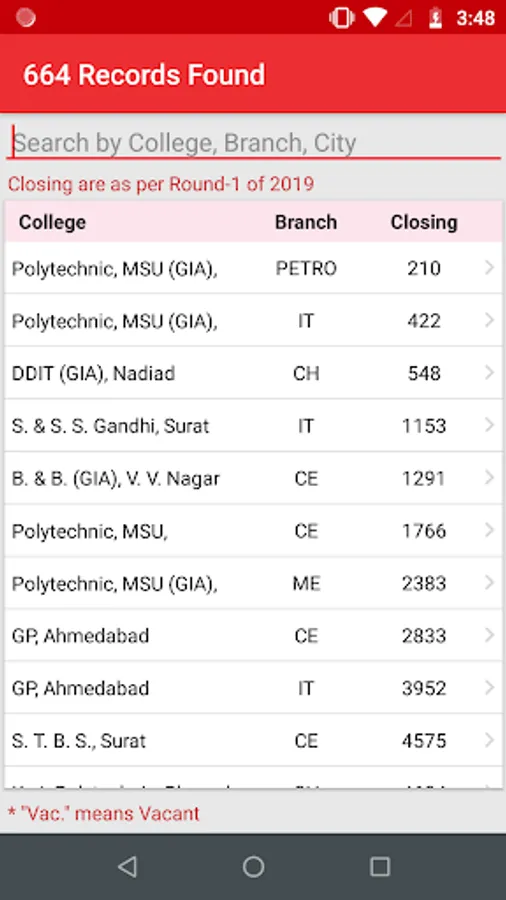 » Search Cut-Off - List of colleges with closing merit number based on merit rank, category (open, sebc, sc, st, ews, tfws), college type (government sfi), city etc. It also shows data of vacant seats.