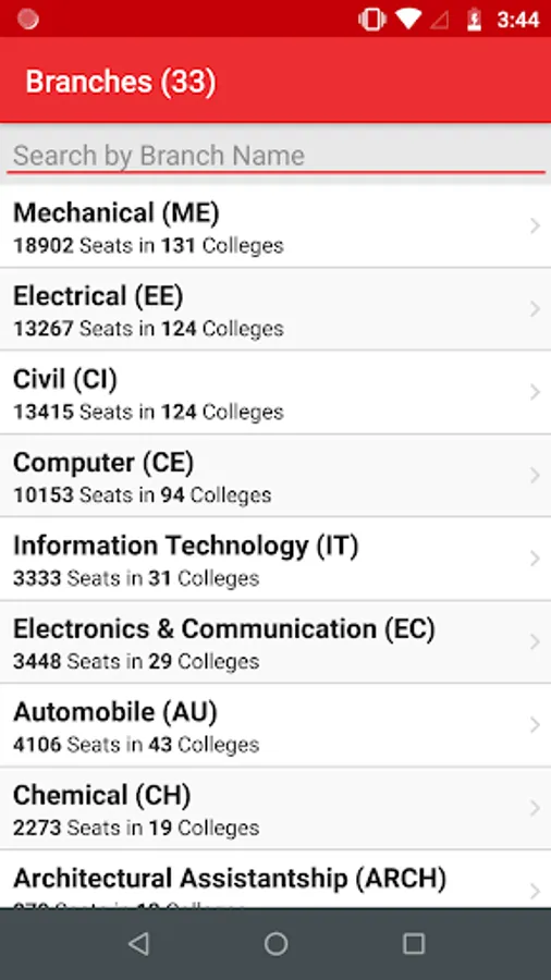 » List of Branches - List of colleges of 30+ branches of diploma engineering like Chemical, Computer, Civil, Mechanical, Electrical, EC, Aeronautical, Automobile, etc.