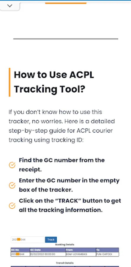 Our online ACPL courier tracker gives you booking, transit, and delivery details. Moreover, you can use our tracking tool on a laptop, PC, and mobile phone. Users can utilize it without technical knowledge, as it is a user-friendly tool.