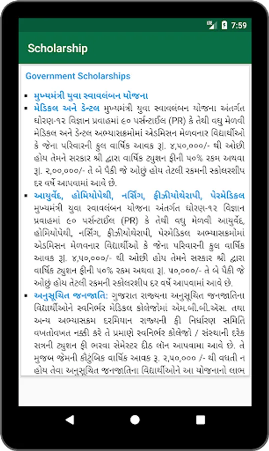 » Scholarship - Details related to Mukhyamantri Yuva Swavalamban Yojana (MYSY) scheme are provided in the app. Details of scholarship availability for SC/ST categories of students is also available here.
