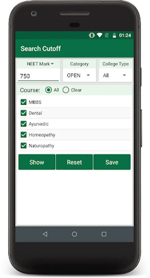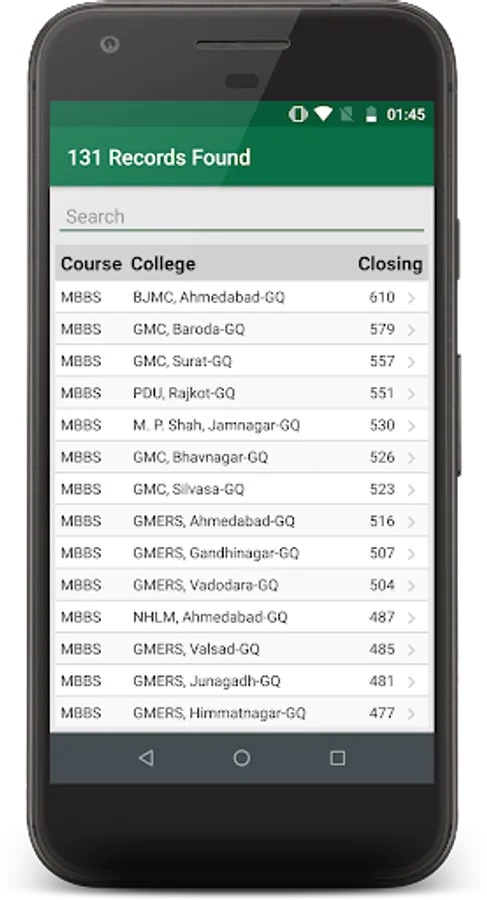 » Cut-Off - App shows the list of colleges based on merit number, Category, College Type, Course entered. Sort the result based on Merit Number, City, or Course. You can even filter the result based on Category, College Type, City, Course, or College.