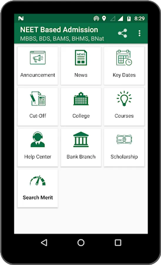 » Bank Branch - All the fees related transactions are done through the bank. The admission booklet is distributed through the bank. The app shows a list of bank branches in your or nearby city.