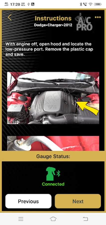 If you are using an A/C Pro® product with Smartcharge ™ technology, the app will connect to the gauge via Bluetooth. The app then provides guided, adaptive vehicle-specific instructions helping to eliminate guesswork. An integrated troubleshooting guide helps users get back on track should the need arise.