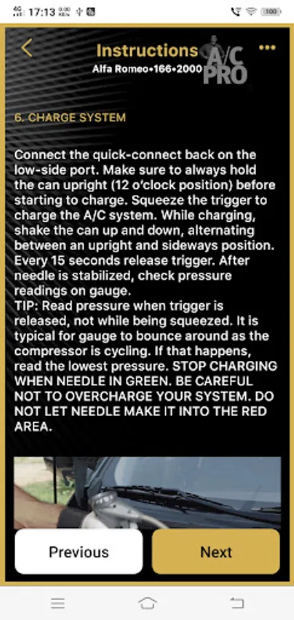 When the time comes to recharge your vehicle’s A/C, the A/C Pro® phone app is here to help you. Step by step instructions, specifically tailored to your vehicle, guide you through the process. From locating the low side pressure port to letting you know when the recharge is complete, the instructions are seamless and easy to follow.