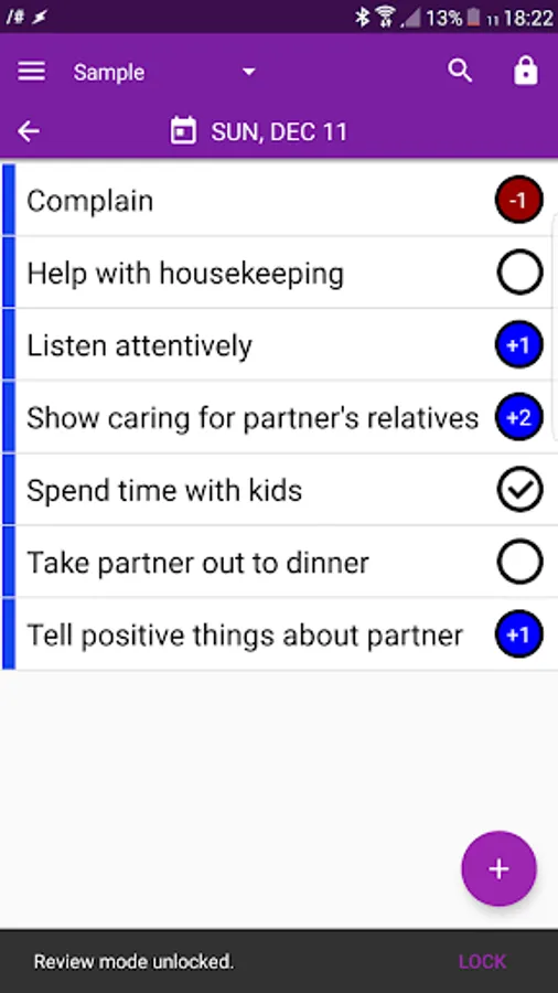 These are only a few ideas and having someone to review your actions is entirely optional. If you use the app alone you just have to be fair with yourself. ;-)