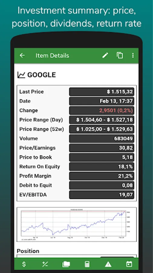 And differently from most apps, no identification or personal/investment data is EVER sent to our servers for your total privacy.
