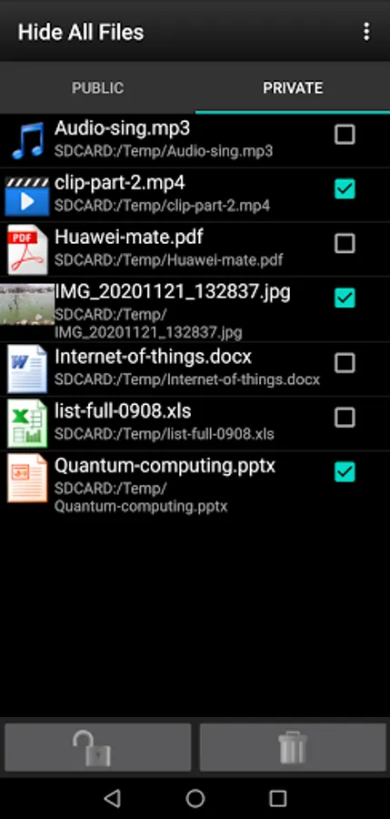 Hide All Files is the best app to hide all your files: photos, videos, Office documents (word, Excel, Powerpoint and more), audio, PDF, etc.