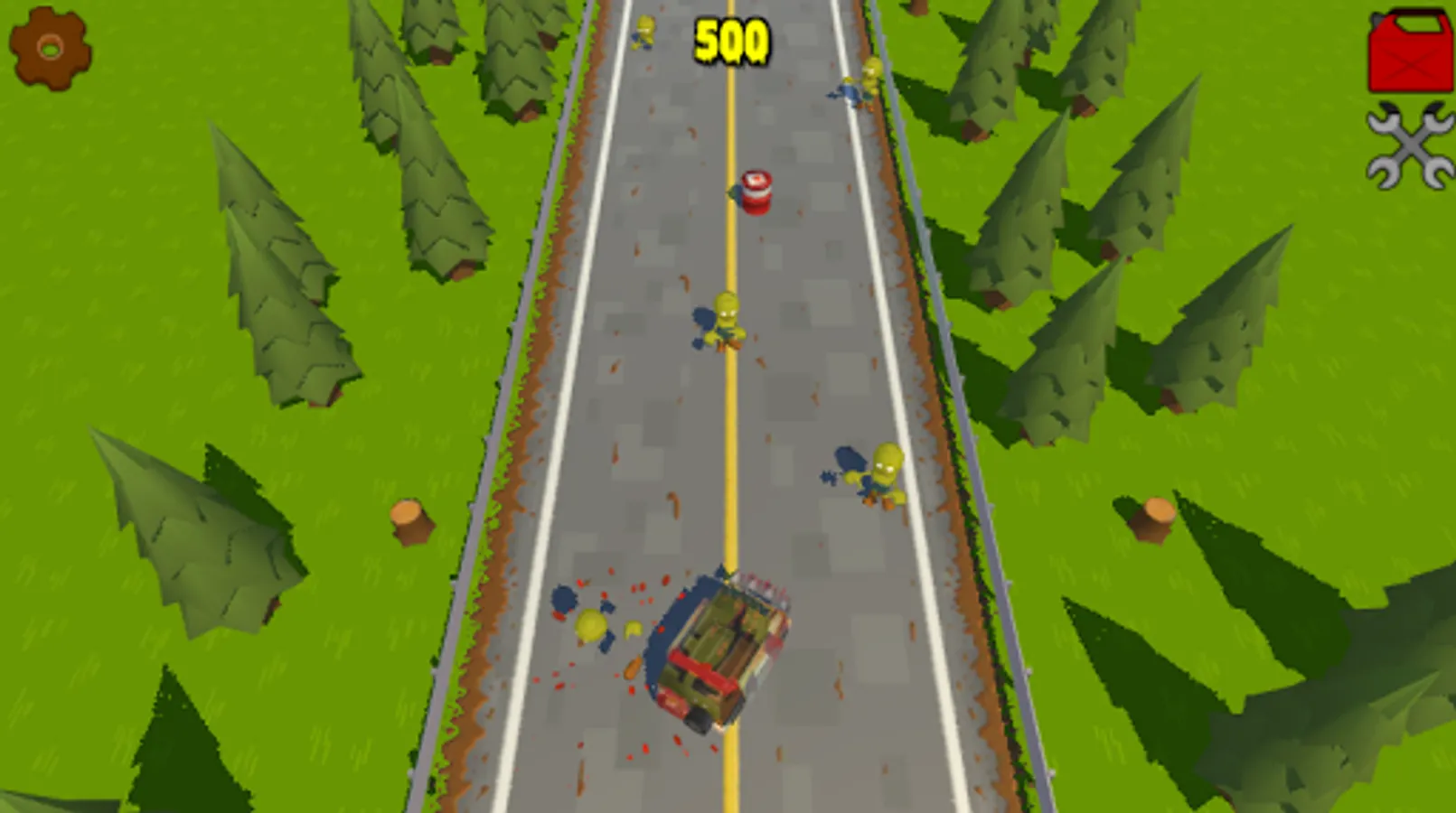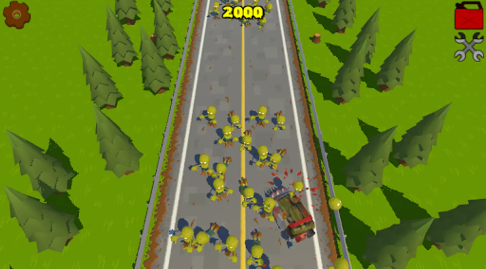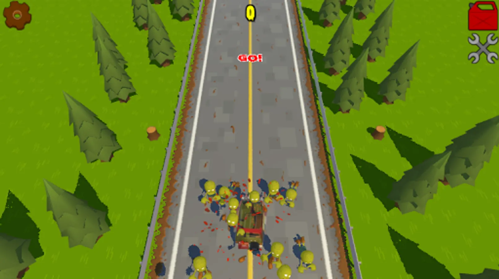 Survive in a road filled with zombies . Runover them to increase your score , collect health and fuel to keep van running .
