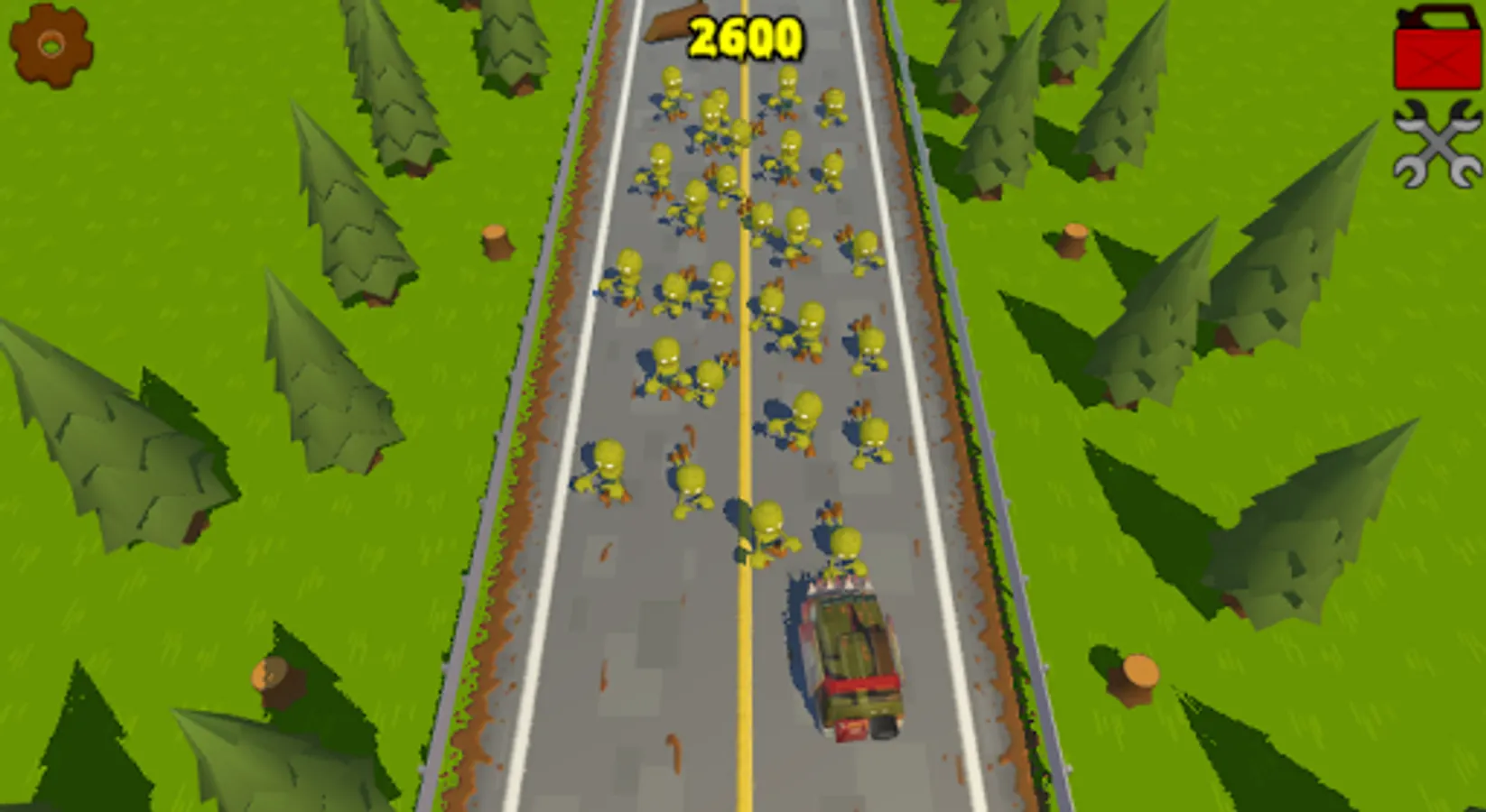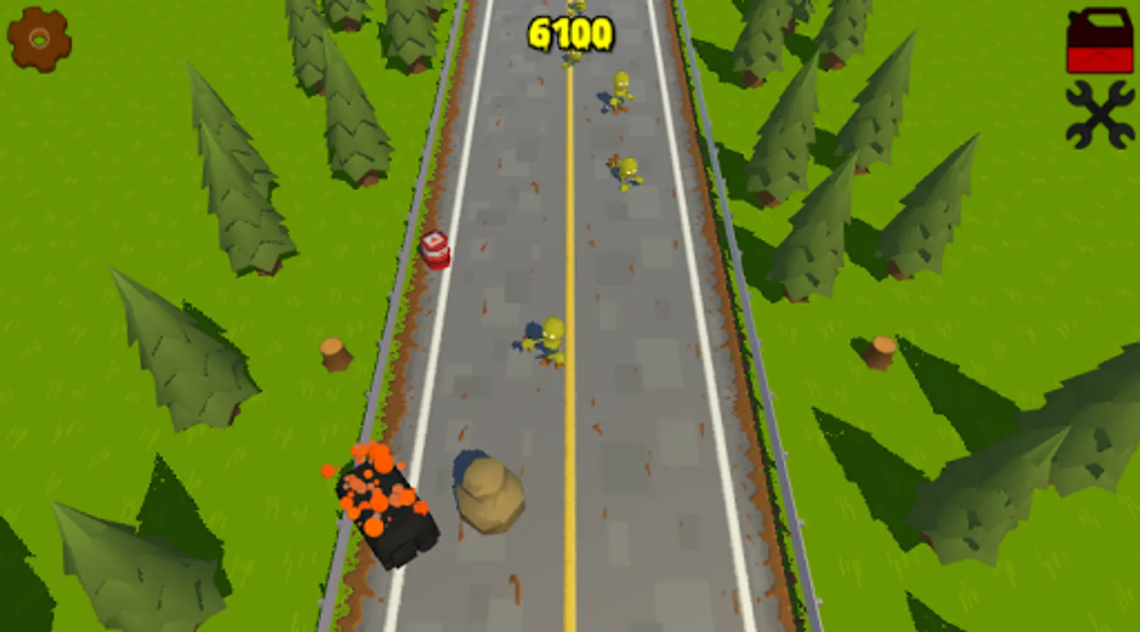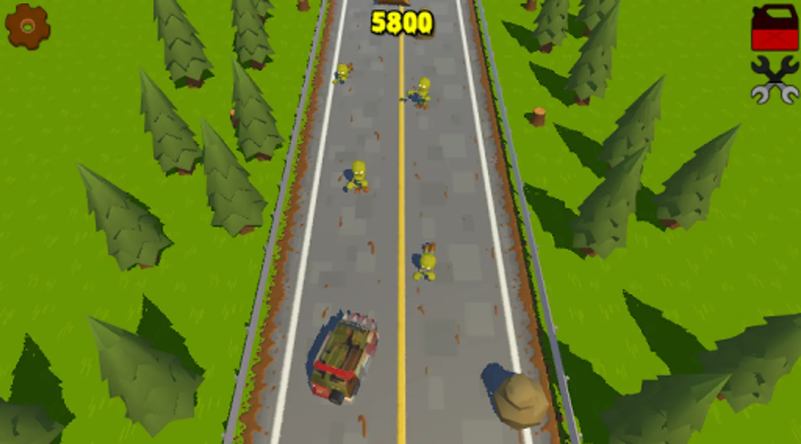 Survive in a road filled with zombies . Runover them to increase your score , collect health and fuel to keep van running .