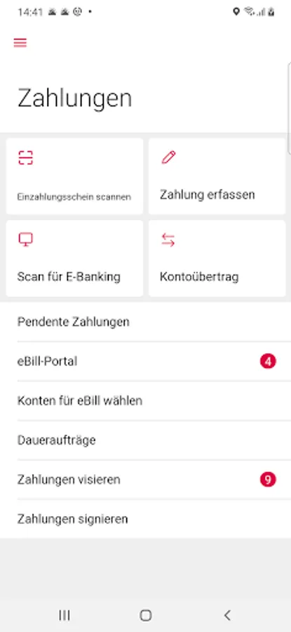 - 'Scan for E-Banking' as a payment slip scanner directly in E-Banking