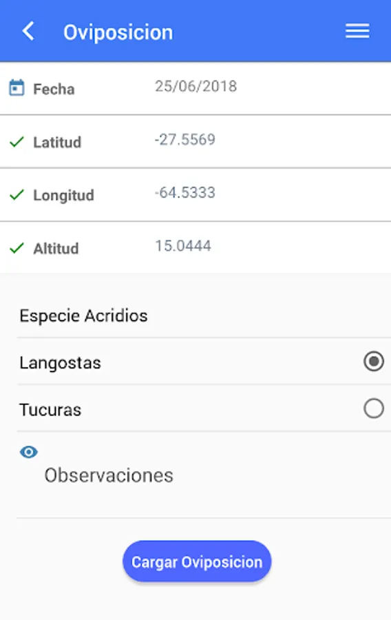 Acridians is an easy way to monitor and subsequent treatments. It also makes oviposition control them. Share the results with peers to see what they are doing. Create polygons to mark dangerous areas or interest and synchronizes the monitoring that you consider important. You can always go back to them on the Data tab. Quick and easy monitoring.