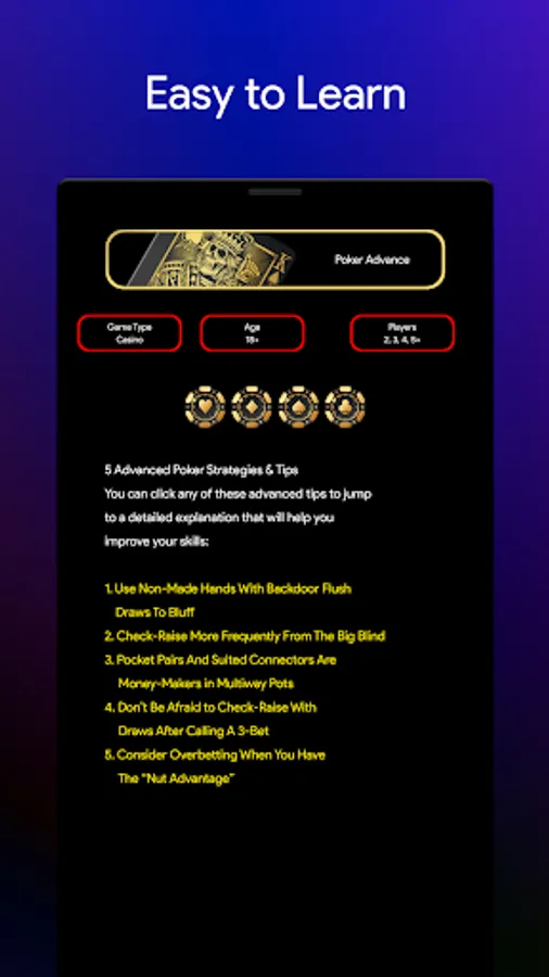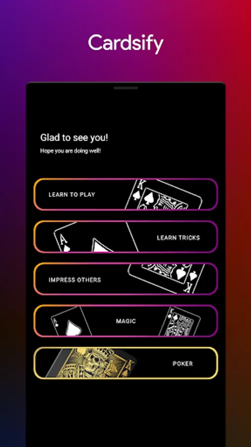 Introducing Cardsify, the ultimate card game learning app! With Cardsify, you can learn how to play popular card games like poker, blackjack, and bridge through tutorials, practice exercises, and quizzes. Connect with other users to play games together and improve your skills. Download Cardsify now and become a card game pro!