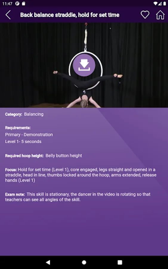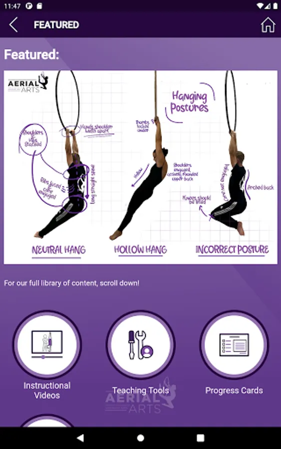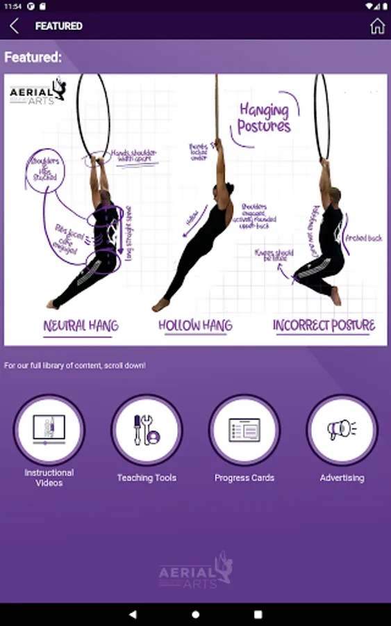 The Aerial Arts App contains all of the information for members of the Aerial Arts Curriculum.