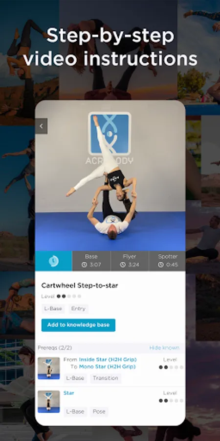 • Use AcroBody to watch 4K-quality videos of every pose, transition, and skill.