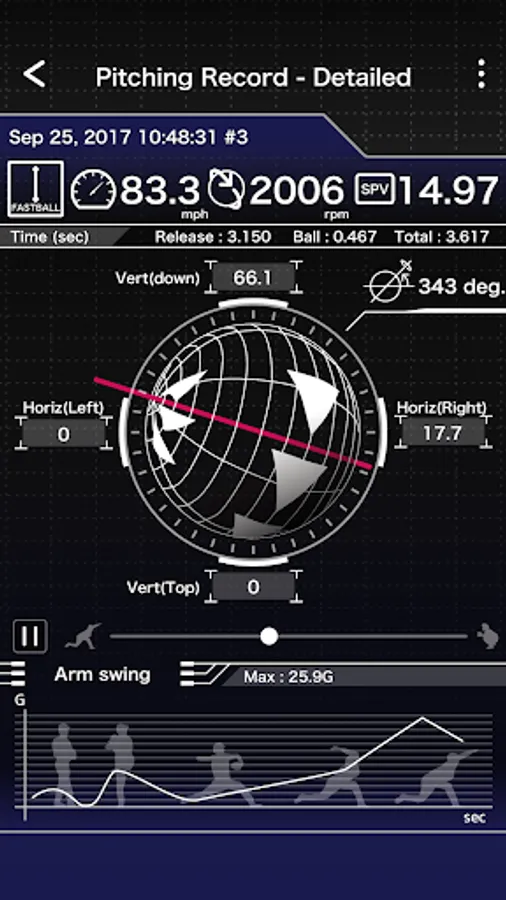 *You can check the pitching data later from the "Record" menu.