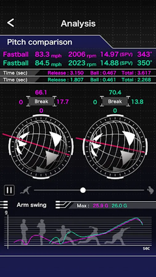 TechnicalPitch can also browse the same pitching data on multiple smart phones if under the same account.