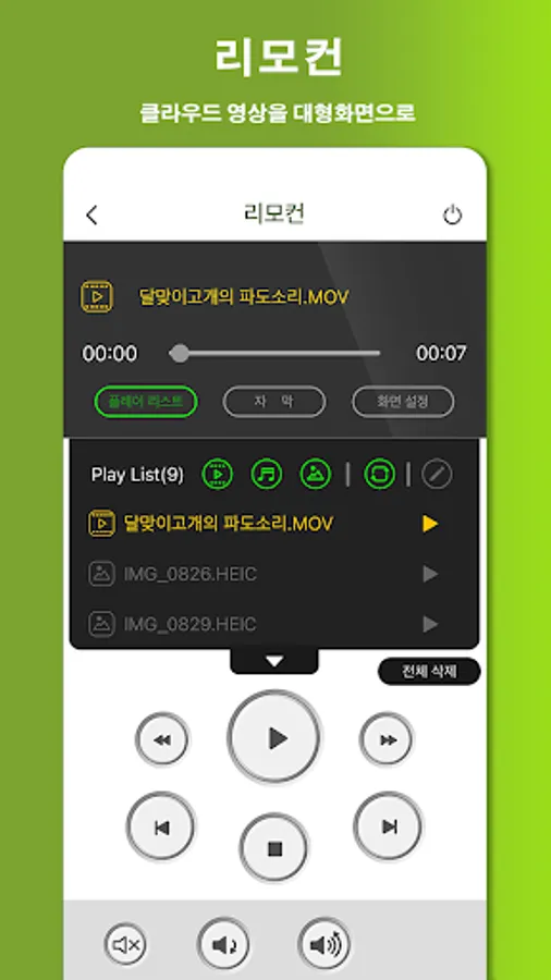 • Play settings (Play/Stop/Pause/FF/FR/Volume control)