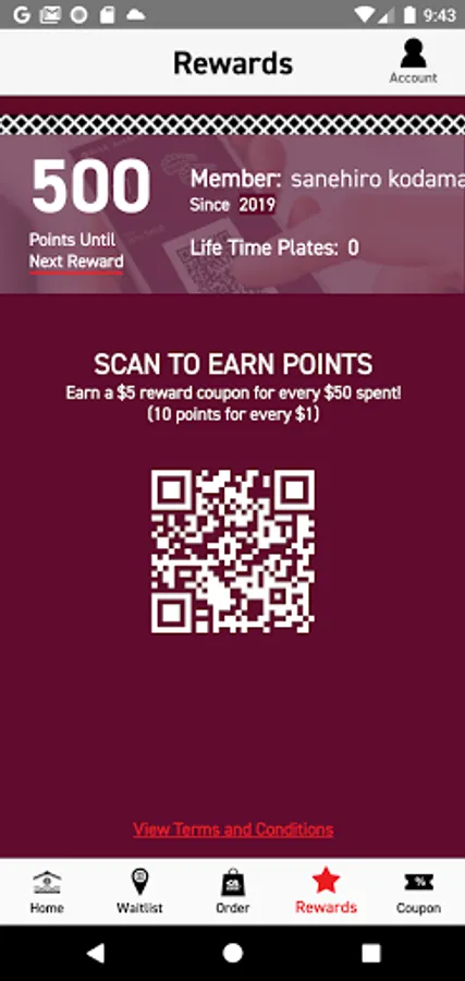 Earn a $5 reward for every $50 spent! (10 points for every $1).