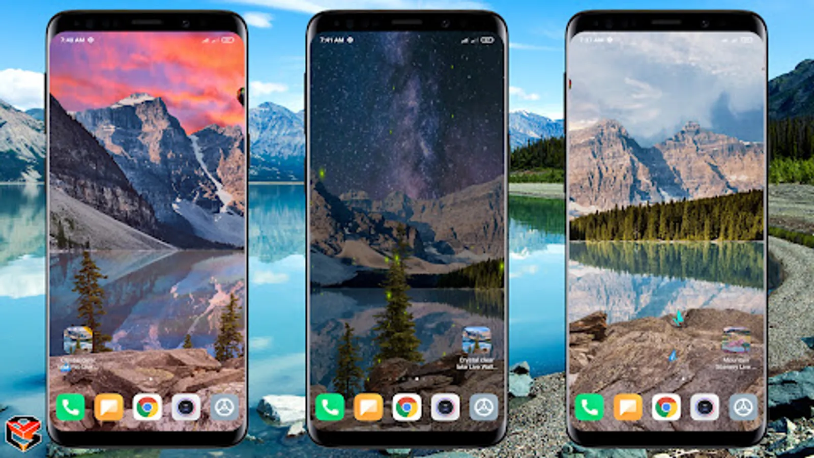 Glitter Lake Live Wallpaper immerses you in the enchanting beauty of breathtaking scenic mountains and transparent lakes. Watch as the morning sun rays penetrate through dense evergreen forests on the slopes of mighty mountains. Feel the coolness of the perfectly clear lake that captivates with its unique beauty. With this app, you get access to these mountain live wallpapers completely free, available 24/7!
