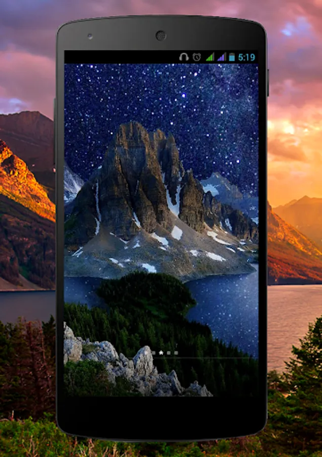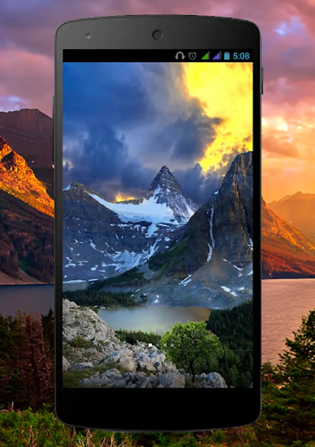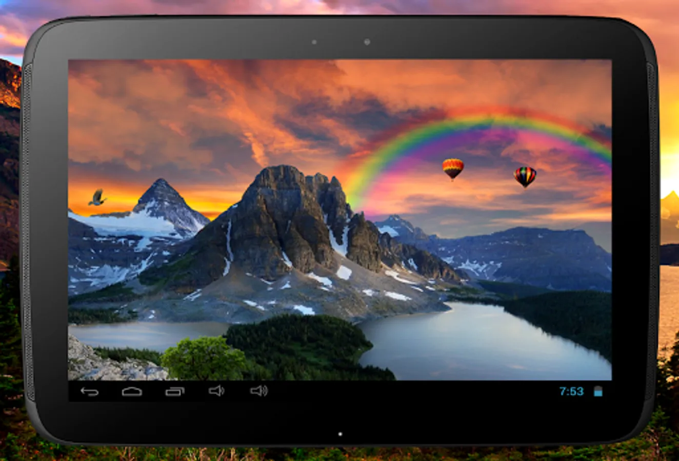 Mountain Lake Live Wallpaper - is a 3D app will take you on a vacation of your dreams on the shore of the magnificent lake, which is located in delightfully scenic mountains and hill-among pine groves and flower fields.