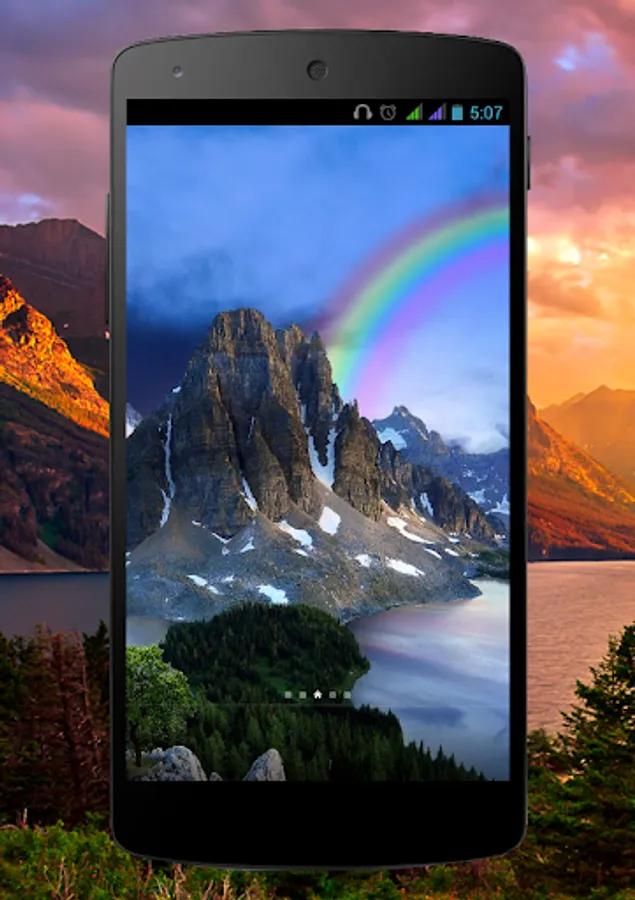 Mountain Lake Pro Live Wallpaper - is a 3D app will take you on a vacation of your dreams on the shore of the magnificent lake, which is located in delightfully scenic mountains and hill-among pine groves and flower fields.