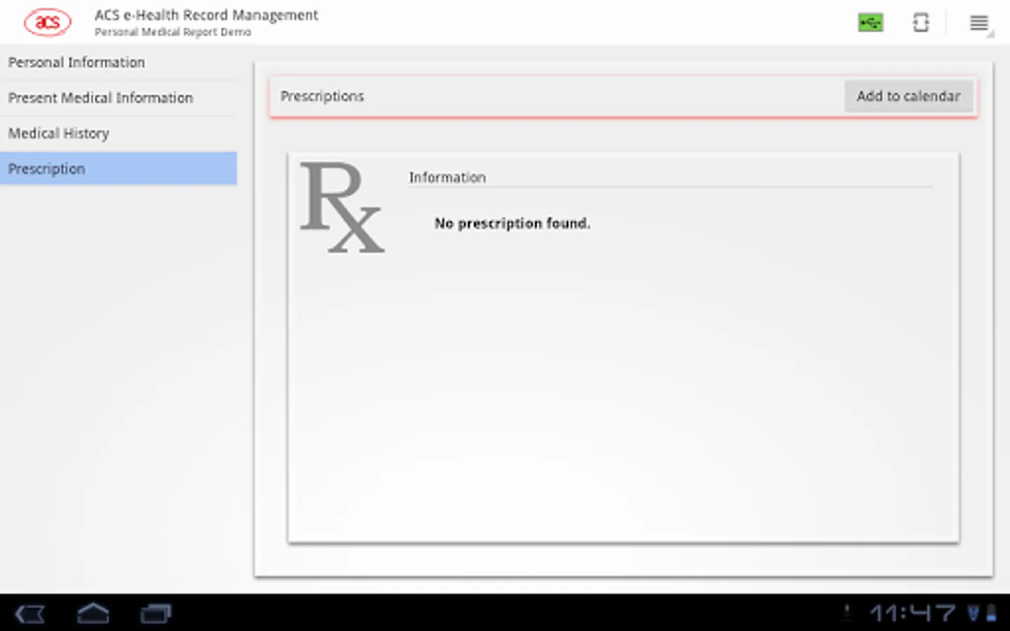 The ACS Personal Medical Report is am application from Advanced Card Systems (ACS) Ltd. that enables users to view their medical history.