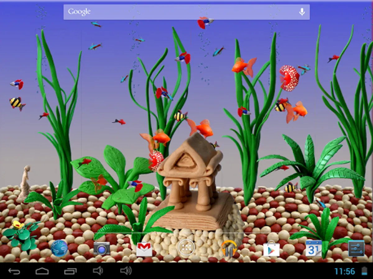 The Plasticine Aquarium Live Wallpaper is a unique and colorful addition to your device. This 3D aquarium features a variety of plasticine fish and carefully crafted backgrounds, all made by hand. With high-quality graphics and flexible settings, this live wallpaper is perfect for those who appreciate the beauty of clay animation and want a unique and original wallpaper. Enjoy the view of your personalized plasticine aquarium every day!