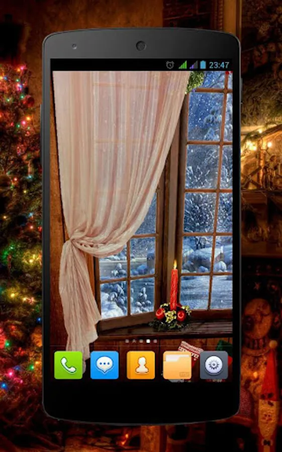Waiting for Christmas Live Wallpaper - immerse yourself in the amazing atmosphere of the beloved holiday. Feel the spirit of Christmas, take a look through the window covered frost in the amazing house that was lost from the mans eyes in the forest on the banks of the river.