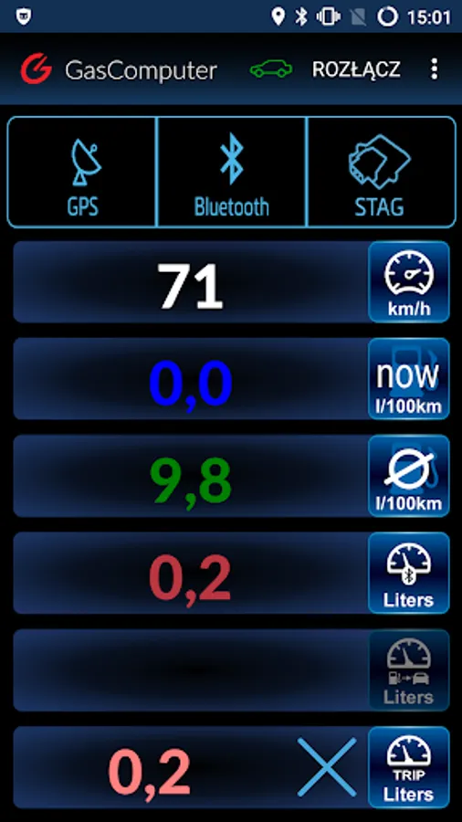 Together with GPS enabled in mobile phone, driver is able to watch fuel consumption (momentary and average), measure fuel already spent and then calculate related costs.