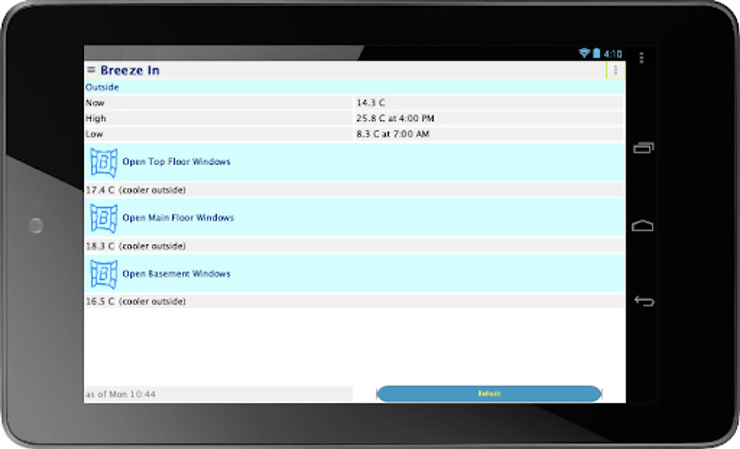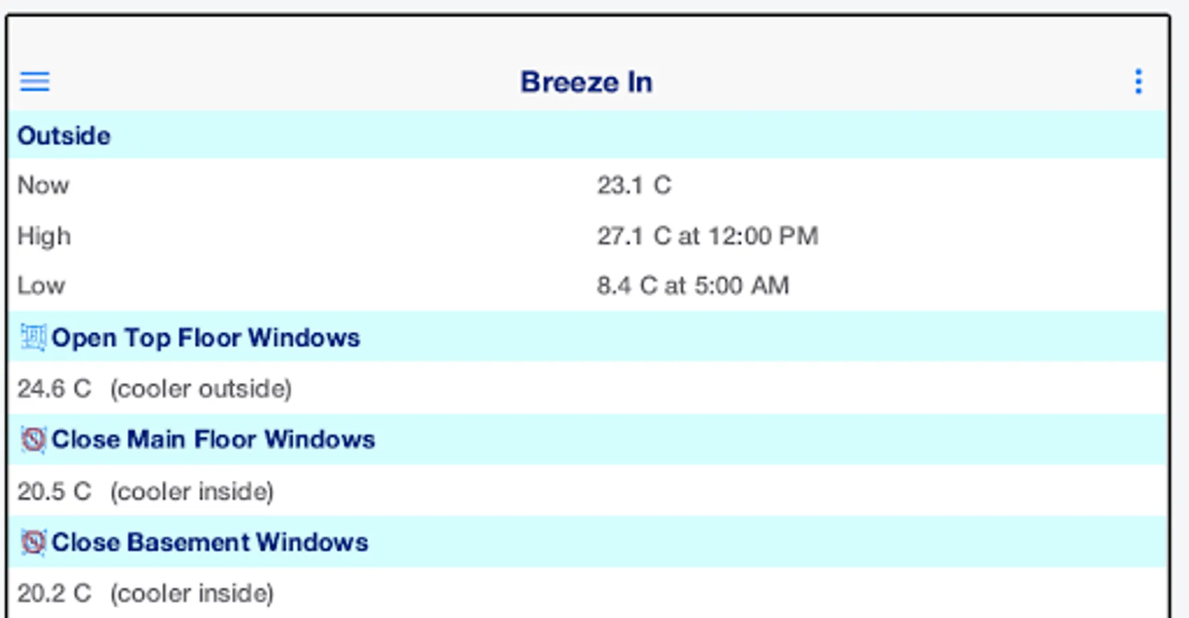Stay cooler and save on energy bills by getting alerts when it's best to open your windows and let the breeze in. Works with Breeze In Temperature Sensors (required). Works for homes with or without air-conditioning.