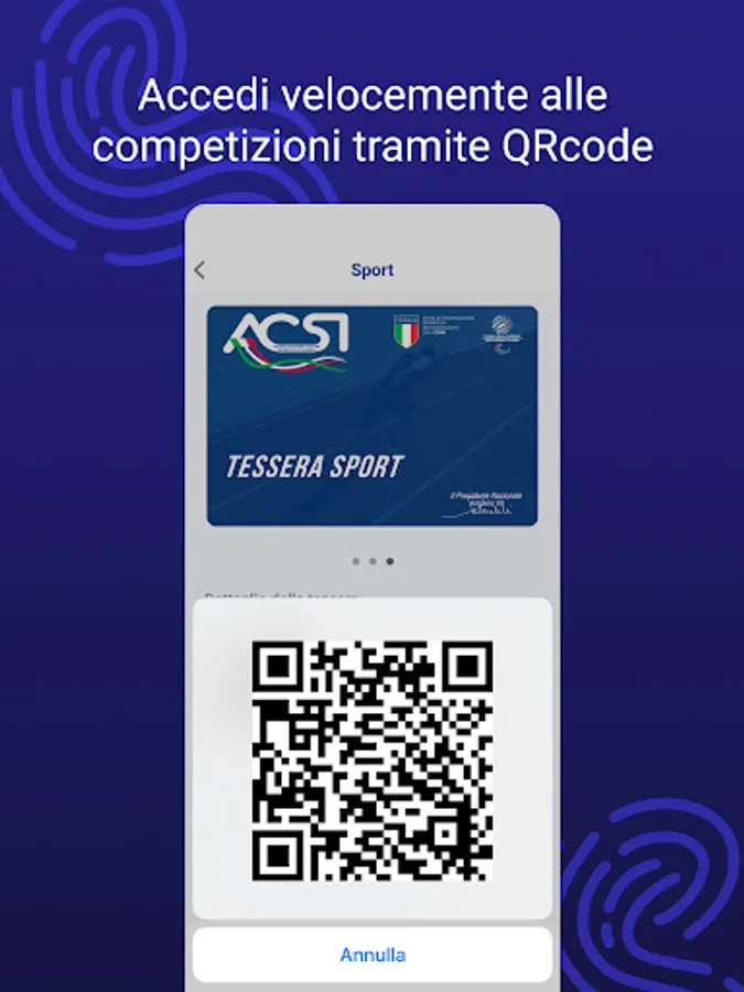 You can use the ACSI app for accreditation of sporting events, using the QR Code even in the absence of a network.