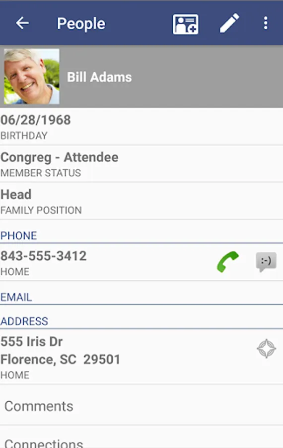 Search for people and view contact information, photos, and family members. Send a text, call, or view a map for home visits. Post and respond to visits or staff tasks. View a calendar of upcoming events. Give or register for events on your phone, anytime.
