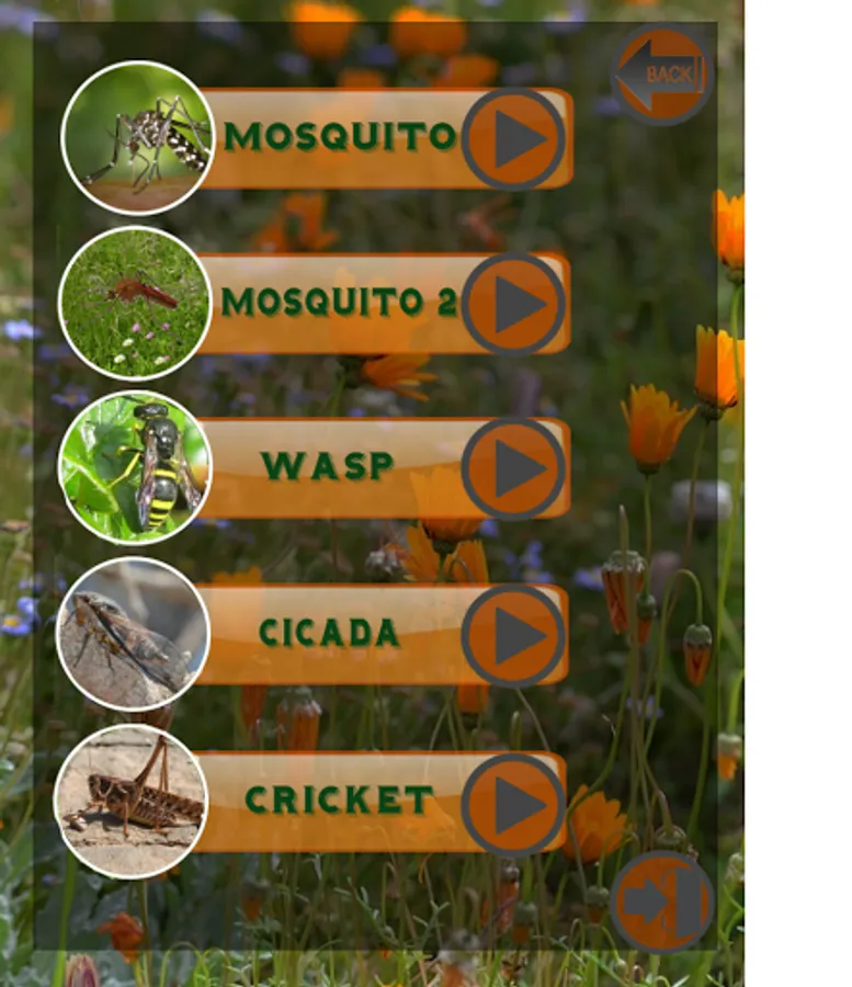 Welcome to this simple app where you will be able to hear high quality and realistic sounds of various insects!