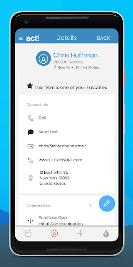 Enjoy everywhere access to Act! contact and company details from the app. Need to add a prospect or update a customer's phone number? It's easy to create, update, and delete contacts and companies on-the-fly. Powerful search capabilities and filters help you find what you need in an instant.