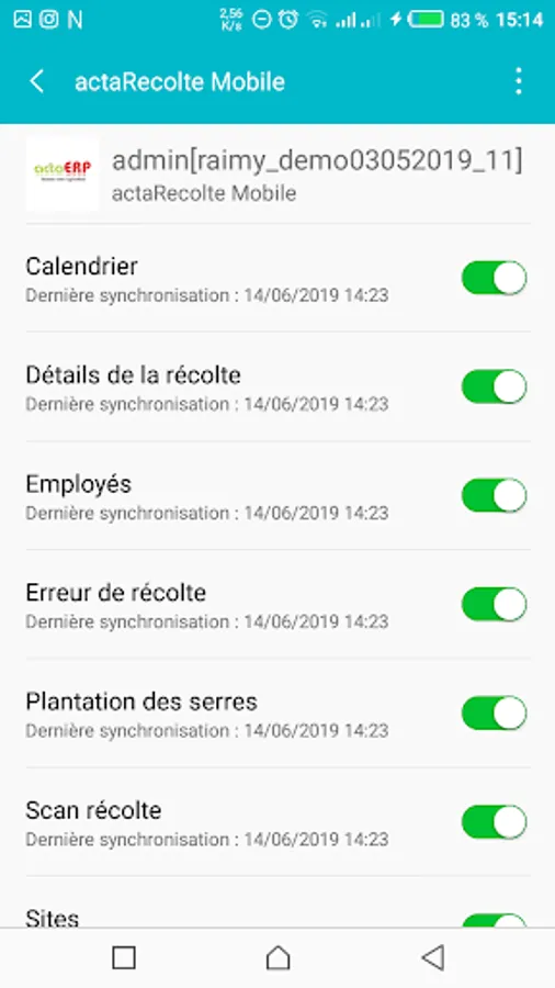 "actaHarvest" is designed to be accessible mainly in connected mode or in disconnected mode (Off Internet connection). It has a powerful synchronization system that allows you to work with real-time data in real time.