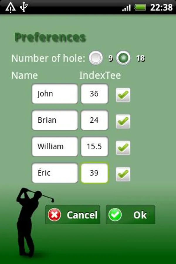 We are here to play and not to do math, here is a very intuitive scorer who will make your life easier on the course. It will record the score for four players simultaneously on a 9 or 18 holes.